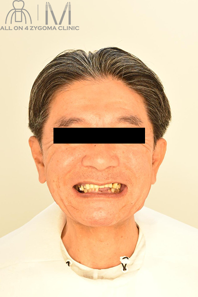 咀嚼しやすい状態で審美性が高いスマイルラインを獲得したいとのご希望で上下顎オールオンザイゴマインプラントを提案、5月25日手術予定となった。