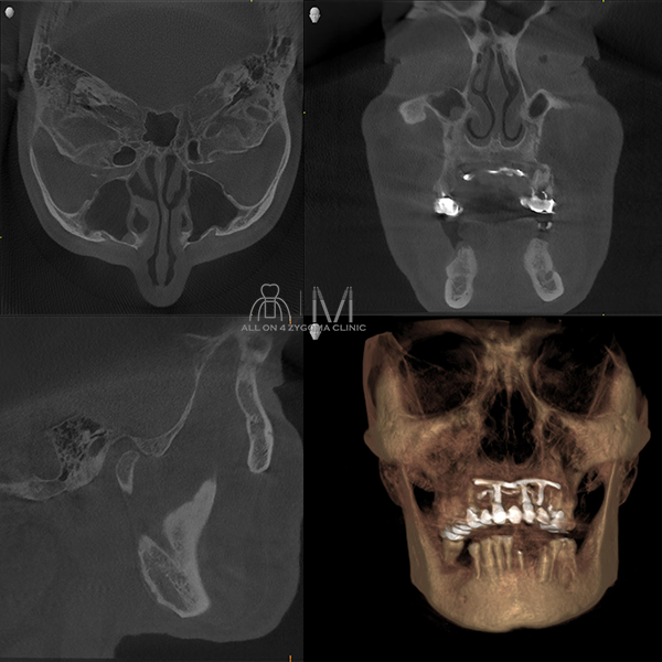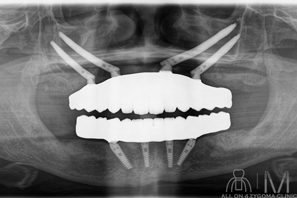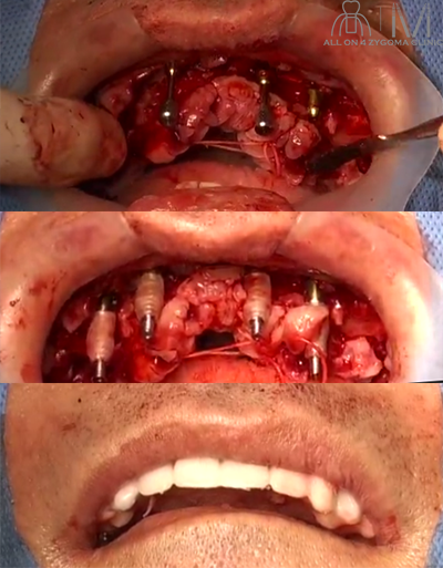術式:静脈内鎮静法下、上下顎オールオン4ザイゴマインプラント