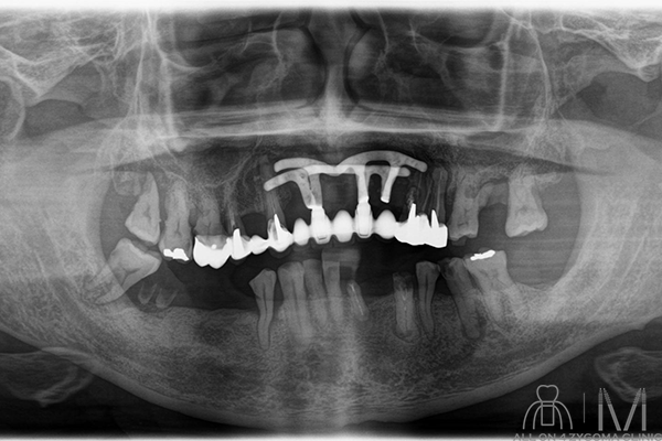 (多数歯抜歯術、ブレードインプラント、撤去、ザイゴマインプラント埋入術)施行