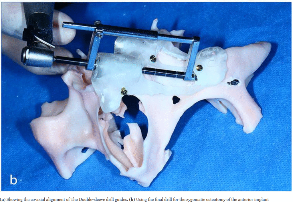 さらに、コンピュータガイド式サージカルテンプレートと併用して、本研究では「ザイゴマドリルガイド(zygoma drill guide)」と呼ばれるカスタム二重スリーブ式ドリルガイドキット