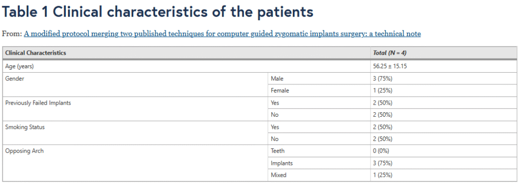 今回ご紹介するのは2024年10月に BMC Oral Healthにて報告されたこちらの論文です。コンピュータガイド手術テンプレートを用いたザイゴマインプラント埋入の精度を評価した研究論文です歯槽頂部の骨切削および補綴的に望ましい位置への埋入シミュレーションを行う際に多いに役立つと思われますので、これからザイゴマインプラントを用いた治療をされる先生方には是非読んで頂きたい論文です。